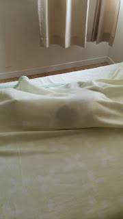 珍しく、ミエルがミーシオのようにシーツに潜り込んで寝ています。